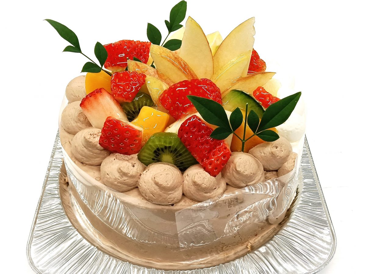 生クリームの苺サンドデコレーションと生チョコクリーム苺サンドデコレーションが一台で楽しめる、ハーフサイズ同士を組み合わせたデコレーションケーキのフルーツ盛り豪華版です。各種サイズご用意できます
