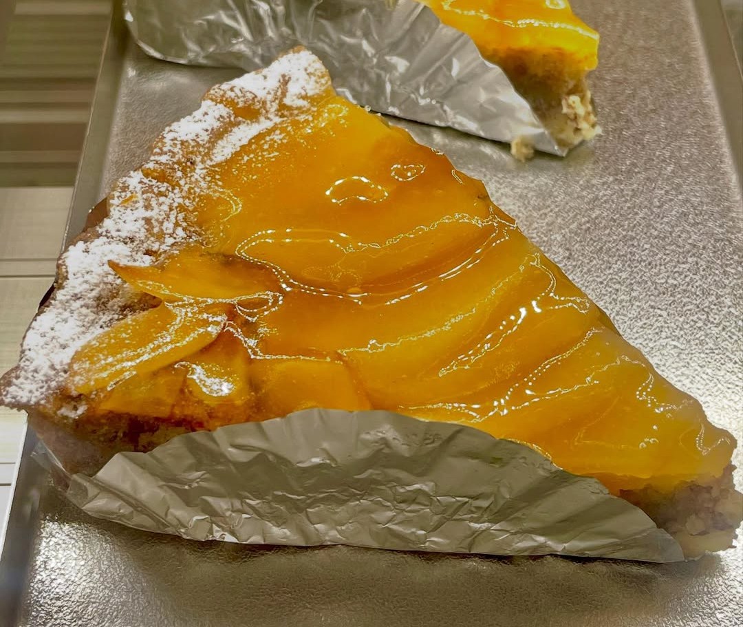 タルト生地に特製アーモンドクリームと洋ナシ、アーモンドスライスを乗せて香ばしく焼き上げ、アンズジャムを塗って仕上げました。